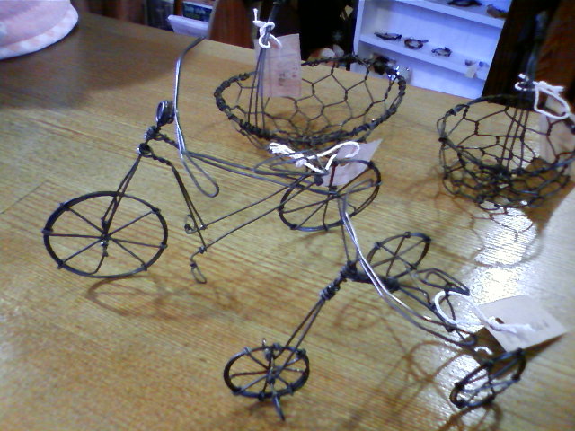 まずはhi-koさん、ワイヤーの自転車、三輪車、かご、シャンデリア。
