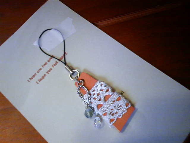 f.nagomiさんより、ビーズと革の携帯ストラップ。