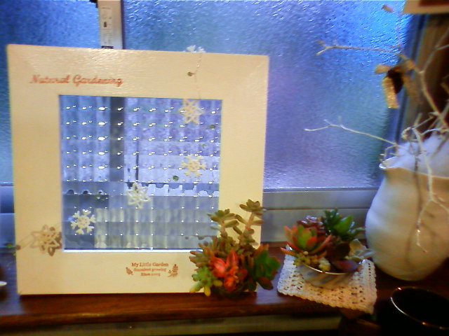 Kazuさんより多肉植物付きガラスの額。