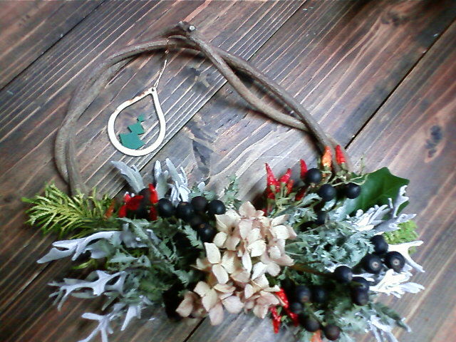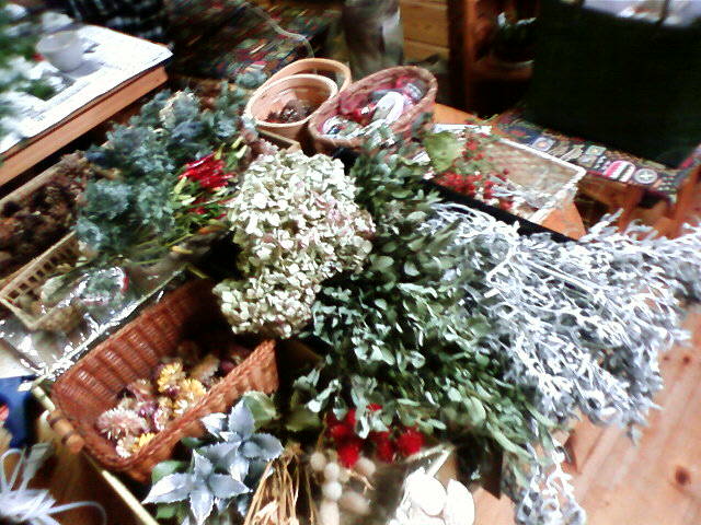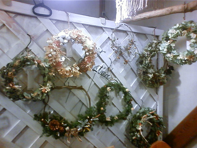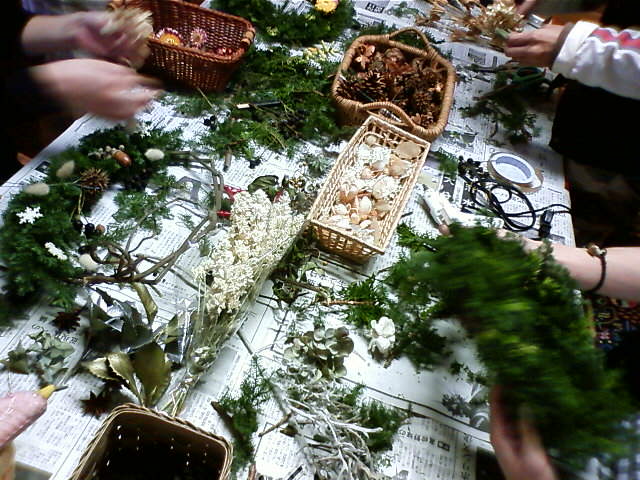 店主、友人と二人でリース作りしました。