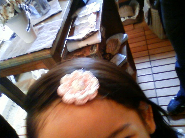 すぐに髪に付けてくれたので写真を撮らせていただきました。