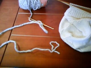 お気に入りの毛糸で服を編みたいそうですがまずは練習から。