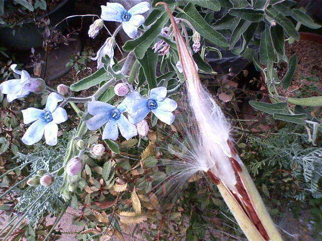 種が豆の房のようになっていてはじけてタンポポの綿帽子の