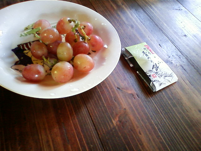 この日のお菓子はぶどうと私が持ってきたおみやげでした。