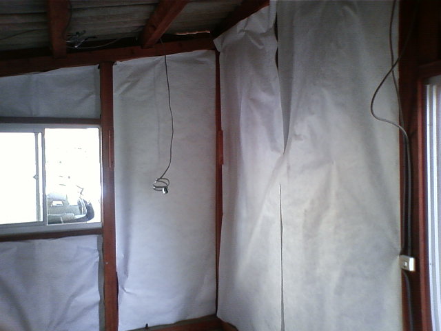 普通は外壁を貼る前に外側から貼りますが、何もしないよりは