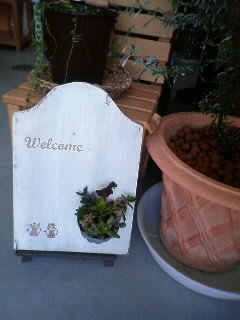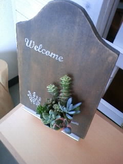 Welcomeボードと多肉植物がセットになっています。