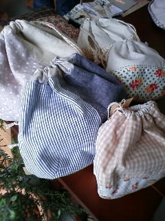 リバーシブル巾着、ショートブリムハット、ブルマーです。