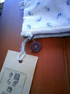 このポーチ、店主が試作中の革製ボタンを使っていただきました。