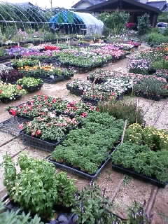 広い敷地にたくさんの花の苗がありました。