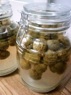 昨日、大きな瓶から移し替えた砂糖漬けの梅。