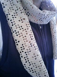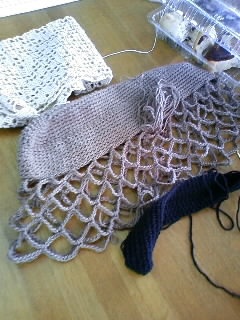 編み物倶楽部で編んでおられたストールが出来上がったと