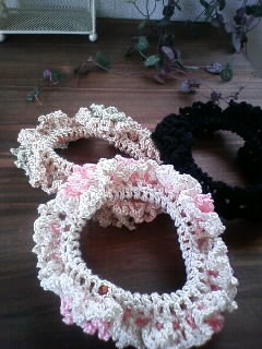 シュシュを編んでみました。