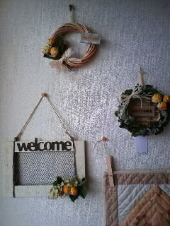 今日はドライフラワーのリースを納品していただきました。