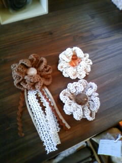 こちらはおまけで自作のコサージュ3点。