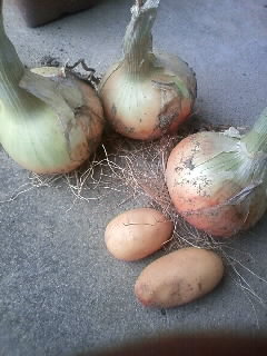 畑のじゃがいもと玉ねぎを一部収穫してみました。