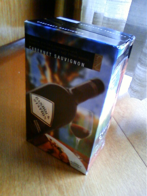 箱の中にワインの入っている袋があり、そこに口を付けて