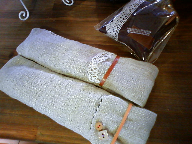 F*さんよりペンケース、ピンクッション、袋つきのスリッパ。